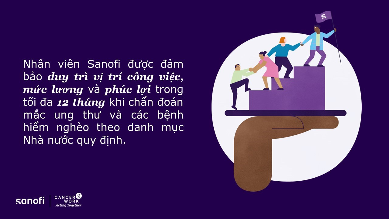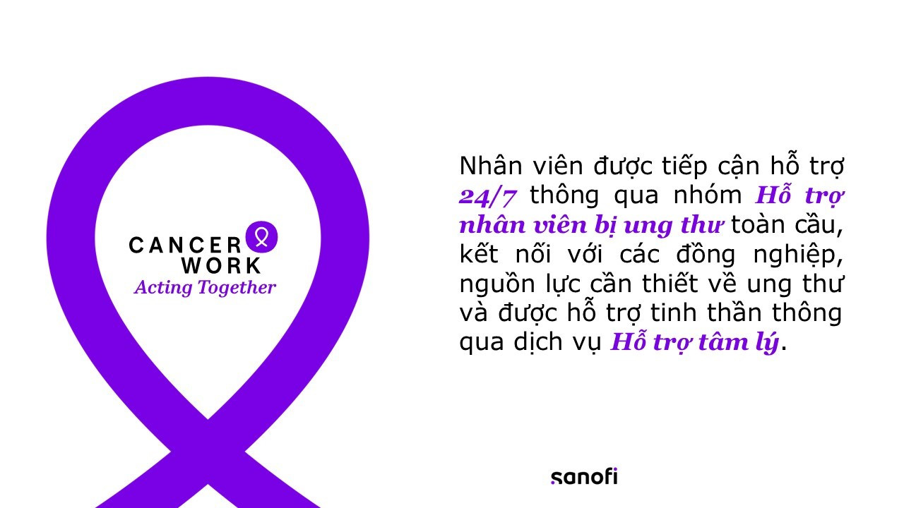 Đầu năm 2023, Sanofi đã tham gia cam kết toàn cầu #workingwithcancer nhằm kêu gọi các công ty xóa bỏ sự kỳ thị đối với bệnh ung thư tại nơi làm việc. Từ đó, chương trình mang tính tiếp cận 360o đối với bệnh ung thư mang tên “Ung thư & Công việc: Cùng nhau hành động” đã được thành lập.