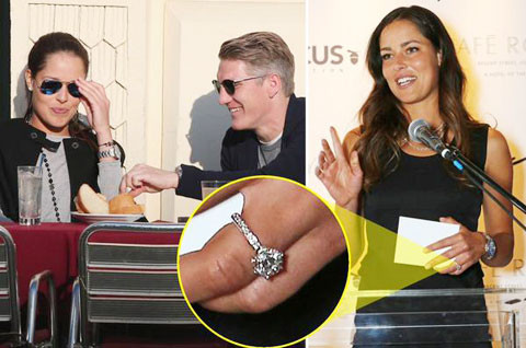 Theo phóng viên Daily Mail, Ivanovic luôn cố tình giấu tay của mình, nhưng vô tình khi lên nhận quà của nhà tài trợ, cô đã để lộ nhẫn đính hôn. Cưới cũng đúng thôi. Kể từ khi gặp gỡ và trúng tiếng sét ái tính khoảng tháng 6 năm ngoái, Schweinsteiger và Ivanovic dính nhau như sam.