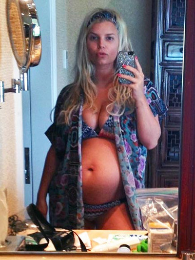 Jessica Simpson mặc bikini khoe vòng một nóng bỏng và bụng bầu vào năm 2012. Lúc này, cô đang trong giai đoạn thứ hai của thai kỳ.
