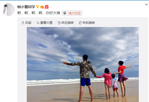 Lục Nghị cho biết vì lo ngại thời tiết xấu ảnh hưởng đến sức khỏe gia đình nên anh cùng các thành viên đã đến Australia du lịch. Tài tử chia sẻ ảnh với thời tiết mát mẻ trên trang cá nhân và nhận được rất nhiều phản hồi từ cư dân mạng. Họ cảm thấy ghen tỵ với gia đình Lục Nghị - Bào Lôi. Ảnh: Lục Nghị Weibo.