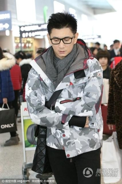 Ngô Diệc Phàm co ro khi xuất hiện tại An Huy (Trung Quốc). Anh đến đây để ghi hình cho sự kiện chào xuân Bính Thân. Anh từ chối phỏng vấn và giữ mặt khó đăm đăm. Nguồn tin Sina cho biết, do thời tiết nhiều nghệ sĩ đã giảm tải lịch trình làm việc. Ảnh: 163.