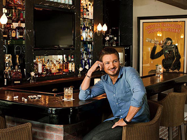 Nam diễn viên kiêm ca sĩ Jeremy Renner thích thức dậy uống cafe và đọc báo tại quầy bar trong biệt thự của anh. Jeremy có thể ngồi ở đó hàng giờ để tán gẫu với bạn bè.