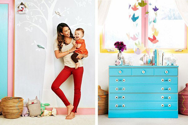 Jessica Alba cũng là bà nội trợ chịu khó trang trí nhà cửa. Cô thiết kế phòng cho hai công chúa nhỏ với màu sắc và họa tiết sinh động. Nữ diễn viên rất thích chơi đùa với các bé trong gian phòng này.