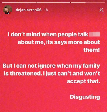 Dejan Lovren không báo cảnh sát mà công khai đăng lại tin nhắn ngay trên tài khoản cá nhân của anh. Tin nhắn có nội dung: “Tao sẽ giết hại cả gia đình Croatia của mày”.