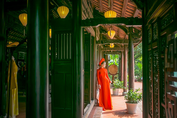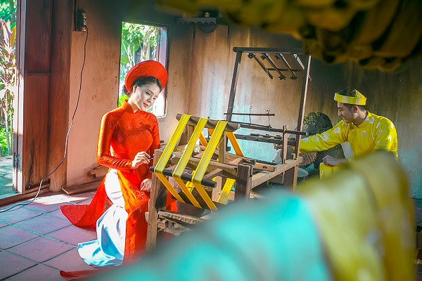 Hội An nức tiếng với làng lụa cổ truyền. Trong những hình ảnh được quay tại đây, Thuỵ Miên xuất hiện dịu dàng với hình ảnh cô gái quay tơ.