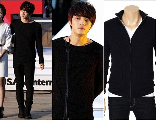 Thân áo bên dưới được thiết kế độc đáo, phần cổ áo thuyền hơi lộ phần vai khiến Kim Jae Joong càng nổi bật hơn trong gu thời trang tinh tế và thân hình chuẩn. Chiếc áo dệt kim mà Kim Jae Joong sử dụng là sản phẩm có thể thể hiện đa dạng phong cách.