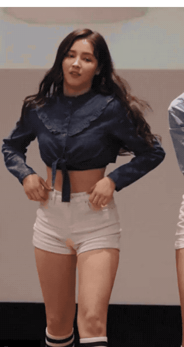 Stylist của nhóm Momoland rất chuộng những chiếc quần soóc cực bó sát khiến các cô gái không hề tự tin khi đứng trên sân khấu. Như Nancy chỉ chờ dịp thích hợp để kéo quần thấp xuống mà thôi.