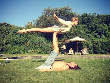 Người mẫu Dree Hemingway tập giữ thăng bằng trên không.