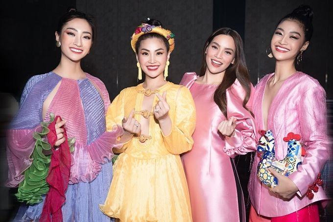 Trong bức hình này, nữ ca sĩ chỉ chịu thua về chiều cao so với Hoa hậu Lương Thùy Linh, Á hậu Kiều Loan chứ nhan sắc lẫn độ tươi tắn thì một chín một mười với các nàng hậu.