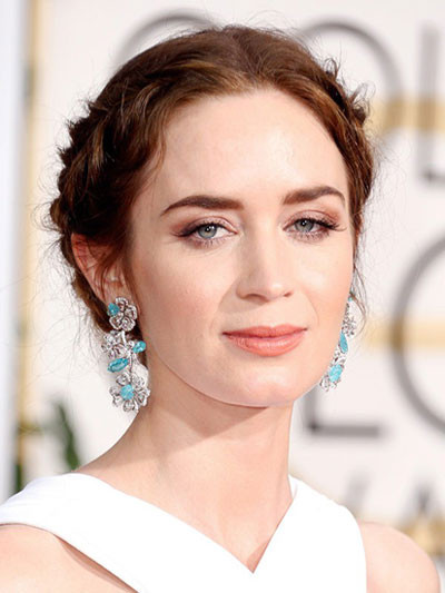 Diễn viên Emily Blunt với tông nền mịn màng, cặp mắt tán màu nâu đồng, môi màu hồng tạo vẻ đằm thắm.