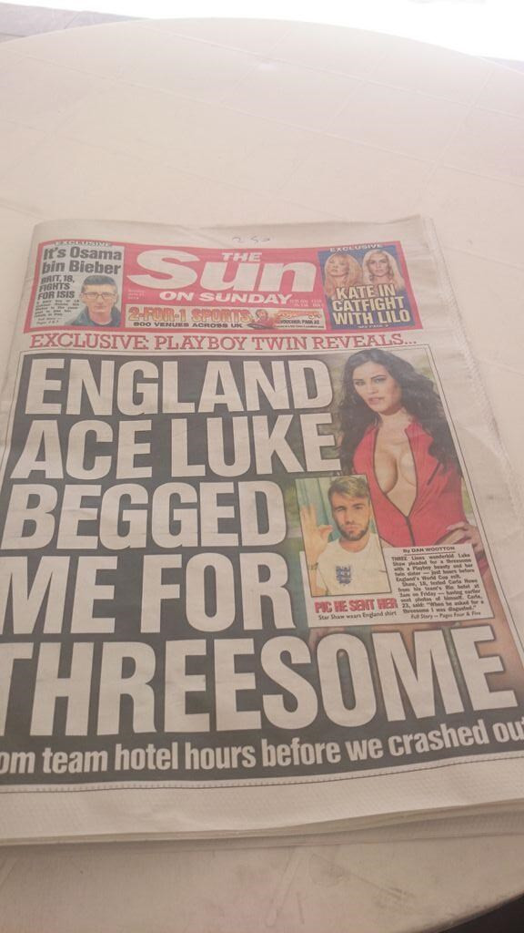 Nhật báo này còn trích đăng lời của siêu mẫu Playboy đã bị sao trẻ của ĐT Anh gạ tình: “Anh ấy đã năn nỉ tôi”. Thậm chí cô còn nói rằng Luke Shaw đã đặt phòng khách sạn và cho 2 chị em cô địa chỉ để tới đó. Để 2 cô gái này yên tâm, Luke Shaw đã nói rằng anh thường xuyên chơi trò này hàng tuần và hoàn toàn đủ khả năng để khiến cả 2 cô “mê mẩn”.