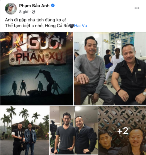 Mới đây, hàng loạt võ sư và nhiều diễn viên bàng hoàng gửi lời chia buồn khi hay tin võ sư Vũ Hải qua đời. Trên trang cá nhân, diễn viên Bảo Anh viết: “Anh đi gặp chủ tịch đúng không ạ? Thế tạm biệt anh nhé, Hùng Cá rô”.