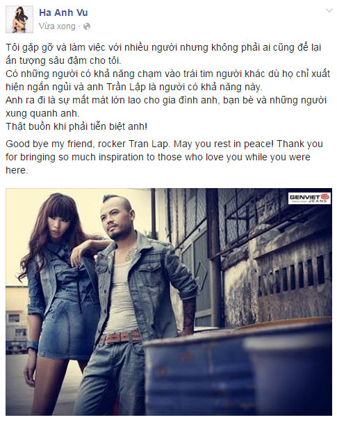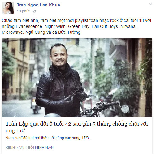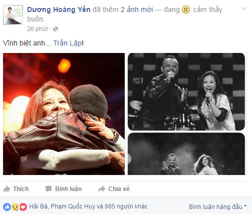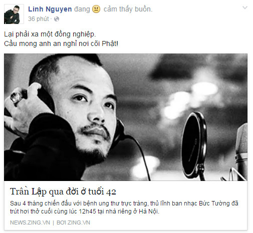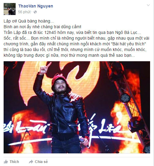 Ca sĩ dòng nhạc quê hương Linh Nguyễn tiếc thương đồng nghiệp.