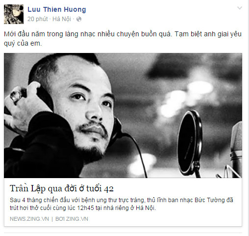 Nhạc sĩ Lưu Thiên Hương bày tỏ trên trang cá nhân.