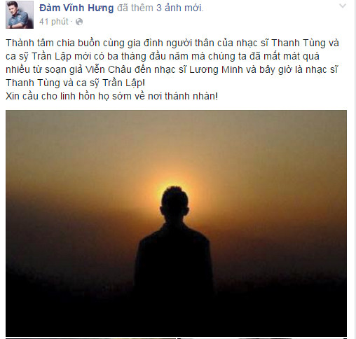 Ca sĩ Đàm Vĩnh Hưng chia sẻ mất mát trước sự ra đi của nhạc sĩ Thanh Tùng và rocker Trần Lập.