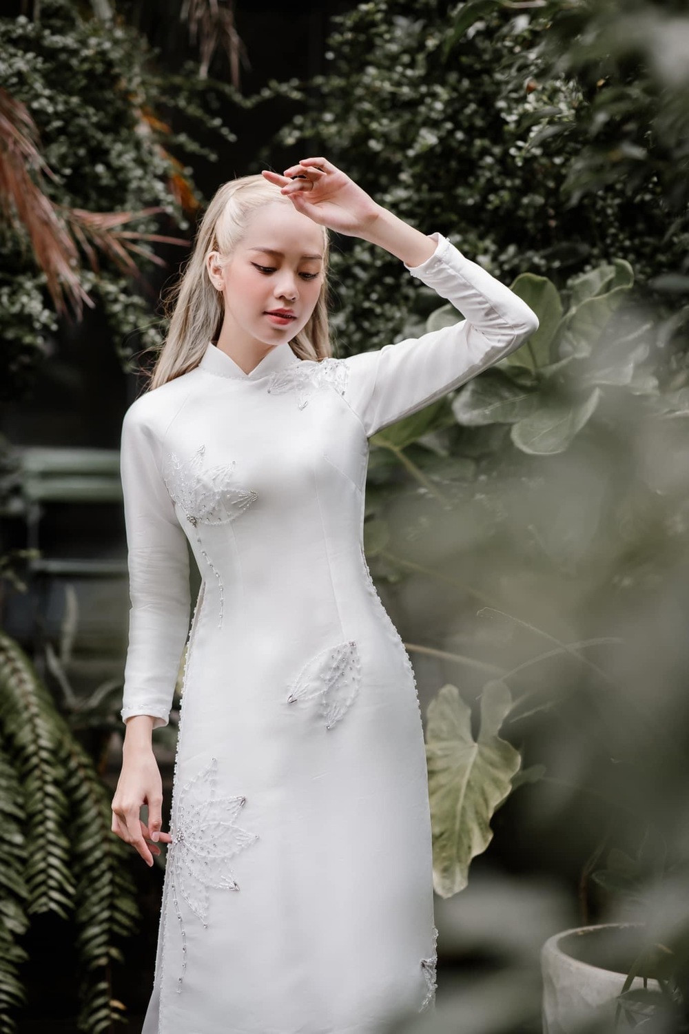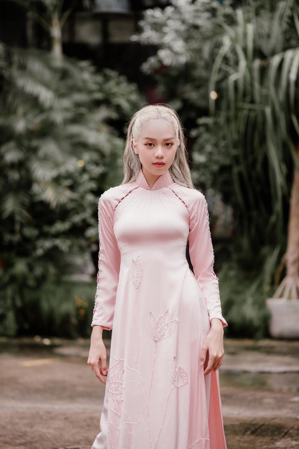 Người hâm mộ bất ngờ trước sự kết hợp ấn tượng giữa màu tóc tẩy thời thượng cùng tà áo dài truyền thống của nàng hậu.