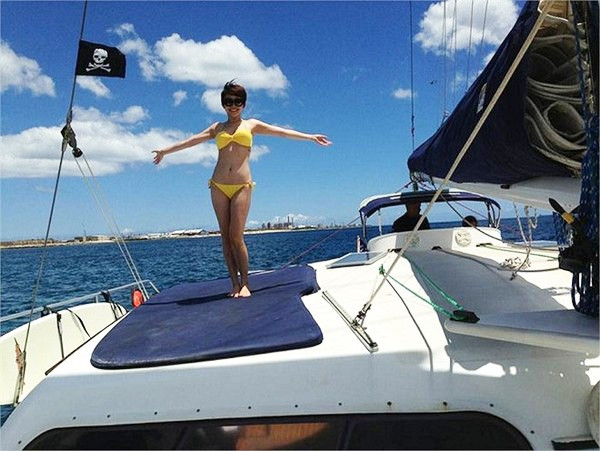 Người đẹp diện bikini nổi bật khi thả dáng trên du thuyền.