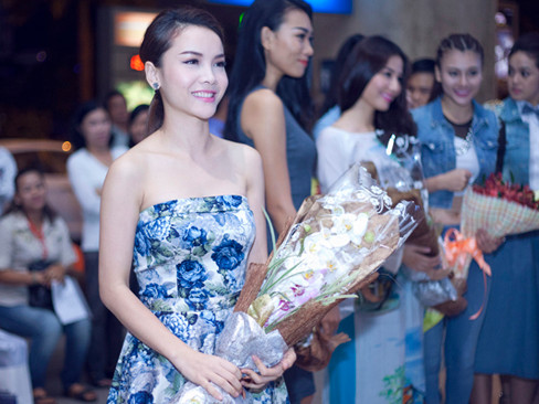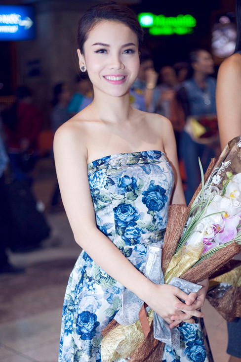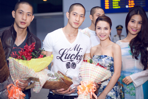 Đến sân bay từ sớm và phải chờ gần hai tiếng để gặp ba anh em họ Lưu nhưng Yến Trang vẫn rất rạng rỡ, cô diện bộ váy hoa đơn giản nhưng rất sang trọng. Trong khi đó người mẫu Diệu Huyền lại là bạn thân của anh chàng Mark Lưu nên hai người có những cử chỉ rất thân thiết.