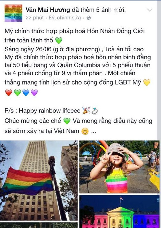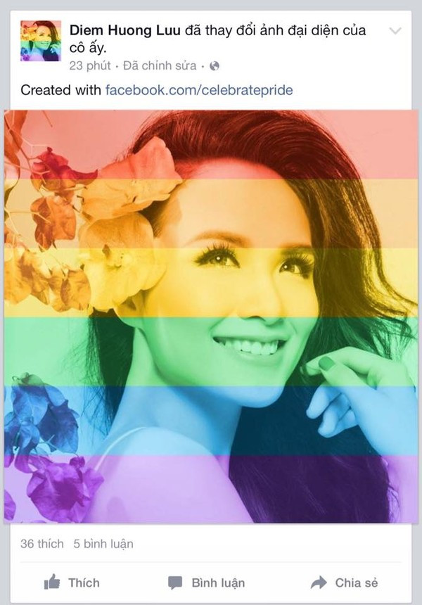 Tại Việt Nam, nhiều sao Việt đã đồng loạt đổi avatar cùng những lời chúc mừng gửi đến cộng đồng LBGT.