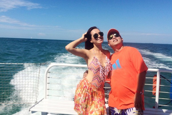 Thúy Hạnh tiết lộ, đảo Key West nằm ở cực nam Mỹ là thánh địa của giới lặn và đánh bắt cá thể thao. Vợ chồng cô trải nghiệm nhiều trò chơi cảm giác mạnh trên biển tại đây.