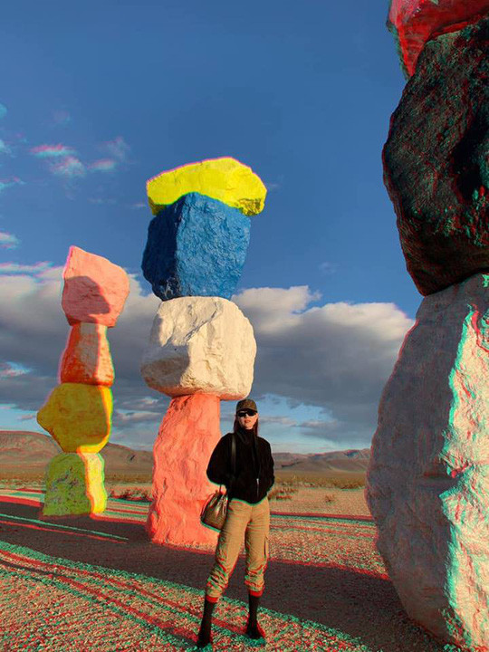 Minh Hằng đi Mỹ du xuân, cô cho biết: "Du xuân nên cũng phải kiếm chỗ nào màu sắc cho hợp với không khí lễ hội, nên tôi chọn bảy ngọn núi huyền ảo giữa sa mạc Nevada. Đây là điểm nhấn khá thú vị và lạ mắt”.