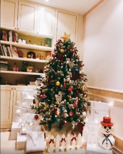 Siêu mẫu Thanh Hằng cũng khiến fans choáng ngợp với không gian Giáng Sinh tràn ngập quà tặng hàng hiệu của mình.