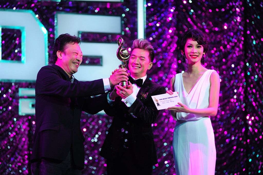 | Mr.Đàm với 2 giải thưởng Music Video xuất sắc và Nam ca sĩ yêu thích nhất. |
