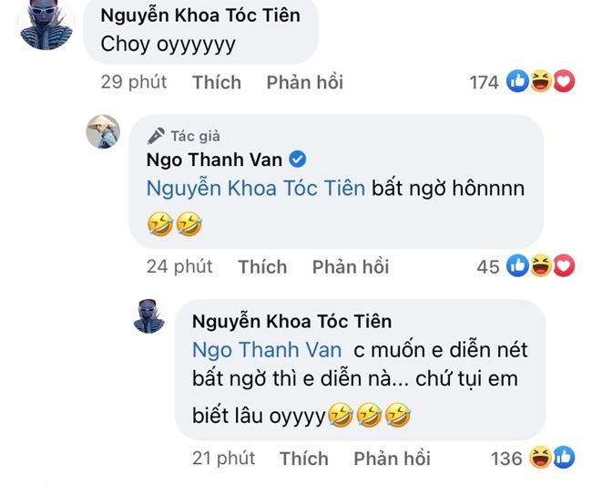 Bên cạnh việc vui mừng cho Ngô Thanh Vân cùng bạn trai, cư dân mạng còn đổ dồn sự chú ý vào phản ứng của những người đồng nghiệp thân thiết của "nàng đả nữ" nổi tiếng. Khi Ngô Thanh Vân hỏi Tóc Tiên có bất ngờ trước tin mình được cầu hôn không, nữ ca sĩ đã có câu trả lời siêu hài hước: "Chị muốn em diễn nét bất ngờ thì em diễn nà... chứ tụi em biết lâu rồi."