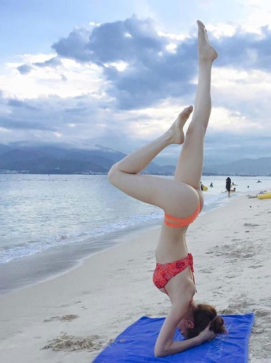 Sau những ngày làm việc mệt nhọc, Hà Hồ cũng dành thời gian đi nghỉ trên biển vào những ngày cuối hè. Cô diện bikini gam màu rực rỡ khoe thân hình nuột nà. Nữ ca sĩ còn gây chú ý với tài năng "trồng chuối".
