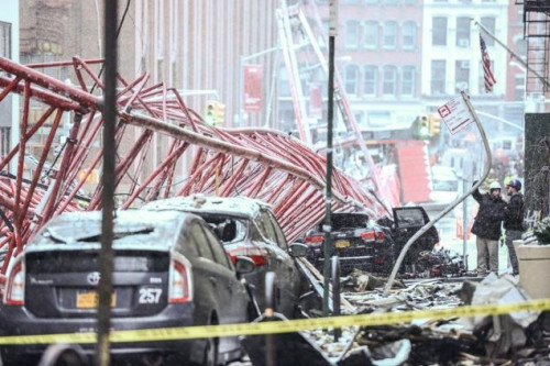 Cần cẩu đè vào một chuỗi ôtô đang đỗ khi sập xuống phố Tribeca ở Hạ Manhattan vào khoảng 8h30.