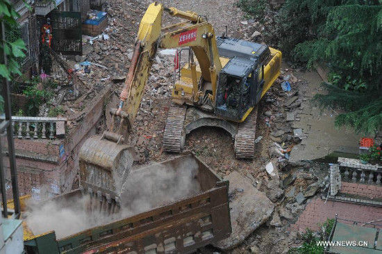 Chính quyền Quý Dương cho rằng lở đất do mưa to là nguyên nhân khiến chung cư nói trên bị sập.