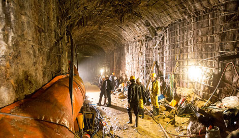 Theo nguồn tin chúng tôi có được, đơn vị thi công trước đây đã sử dụng máy khoan dàn để mở đường hầm 4,7mx4,7m. Khoan xong, nếu là điểm đá cứng thì để nguyên, chỗ đất yếu thì gia cố bằng thép hình I200, liên kết tạo hình khung vòm, dùng thép mỏng 5-7 ly hàn liên kết với thép 16 và lưới mắt cáo, rồi phun bê tông vẩy để tạo độ cứng trên mặt vòm hầm.
