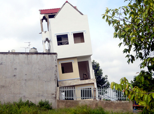 Tường nhà anh Bửu nứt toác. Theo anh Bửu, hồi đầu năm, do căn hộ đang sống chật chội với hơn chục thành viên và còn là trụ sở công ty chuyên sản xuất nước đá tinh khiết của gia đình nên mọi người đã vay mượn tiền cất thêm căn nhà 3 lầu, một trệt có diện tích 4,2m x 10m bên cạnh cho anh Lân đứng tên. Công trình có hợp đồng trọn gói hơn 800 triệu đồng với Công ty TNHH MTV Xây dựng - Trang trí nội thất Hiệp Phước (quận 12, TP HCM ).