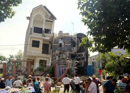Cũng theo anh Bửu, trước đó, khi đổ sàn bê tông tầng một, gia đình đã phát hiện mặt sàn nghiêng về bên phải nhưng đơn vị thầu giải thích "độ nghiêng nằm trong giới hạn cho phép" nên tiếp tục thi công thêm 2 tầng. Khi căn nhà đang hoàn thiện, công nhân vừa sơn nước phần mặt tiền cho nhà thì xảy ra sự cố. Gia đình chỉ kịp mang được một ít vật dụng ra ngoài. Nguyên nhân vụ việc đang được điều tra.