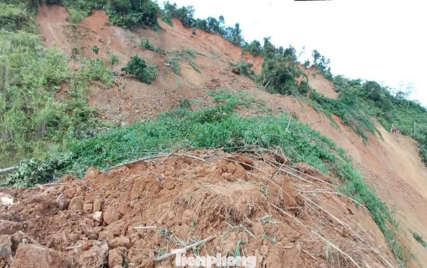 | Cung trượt dài hơn 150m với hàng vạn khối đất đá sạt lở khiến giao thông Lai Châu và Điện Biên bị chia cắt. |