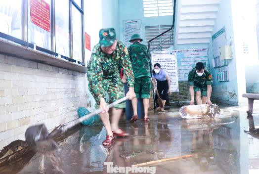 Về công tác khắc phục, tại phường Ghềnh Ráng, ngay từ sáng sớm 12/10, hàng chục chiến sĩ Trung đoàn Cảnh sát cơ động Nam Trung bộ, lực lượng Bộ đội Biên phòng cửa khẩu Cảng Quy Nhơn cùng các cán bộ, viên chức phường đã khiêng bàn ghế để dọn rửa bùn non, rác thải còn đọng lại sau khi nước lũ rút…