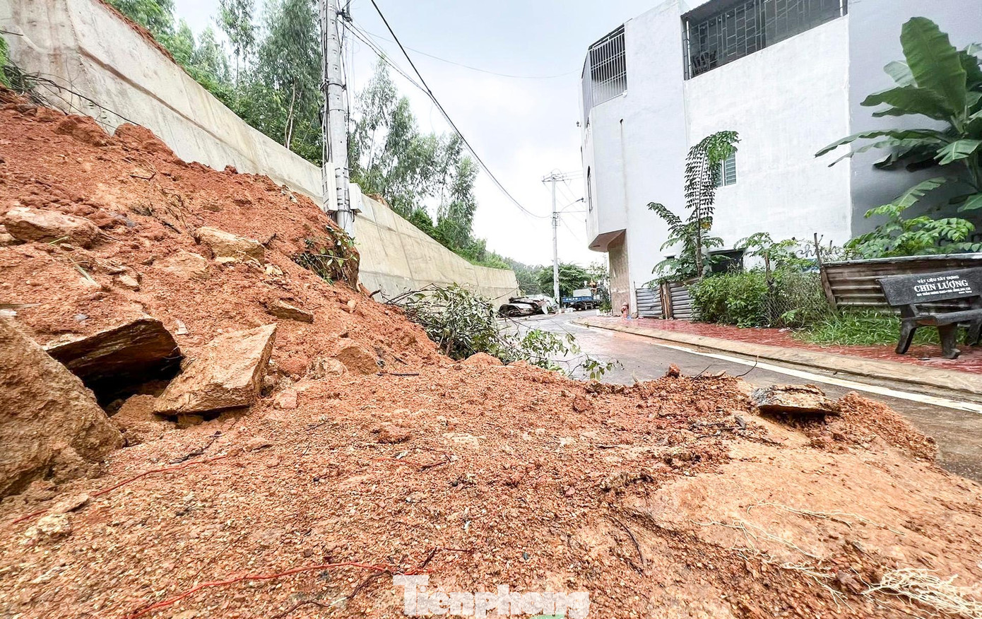 Qua ghi nhận tại hiện trường, một khối lượng đất đá đổ xuống chiếm gần hết lòng đường. Nhiều tảng đá lớn trên núi cao trượt xuống nằm ngổn ngang. Khu vực này có nhiều nhà dân dọc theo triền núi.