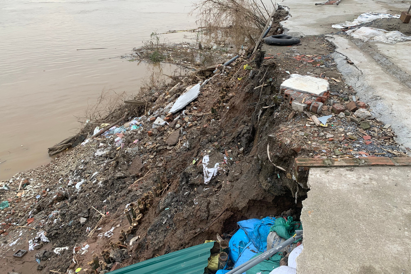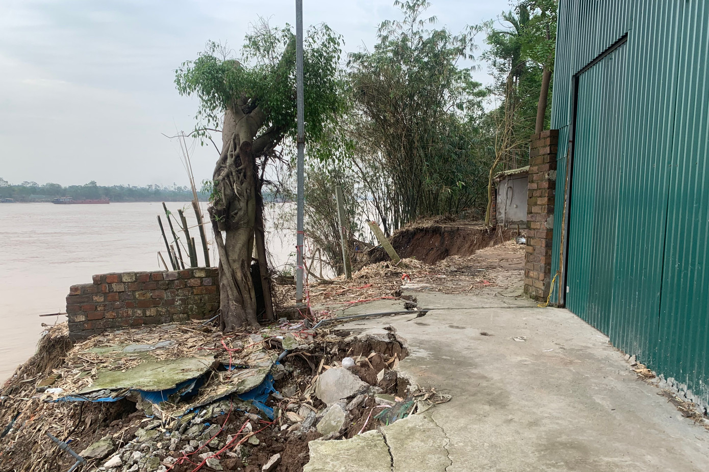 | Khu vực sạt lở ảnh hưởng trực tiếp đến nhiều hộ dân. |