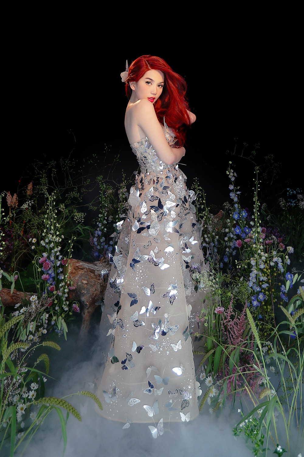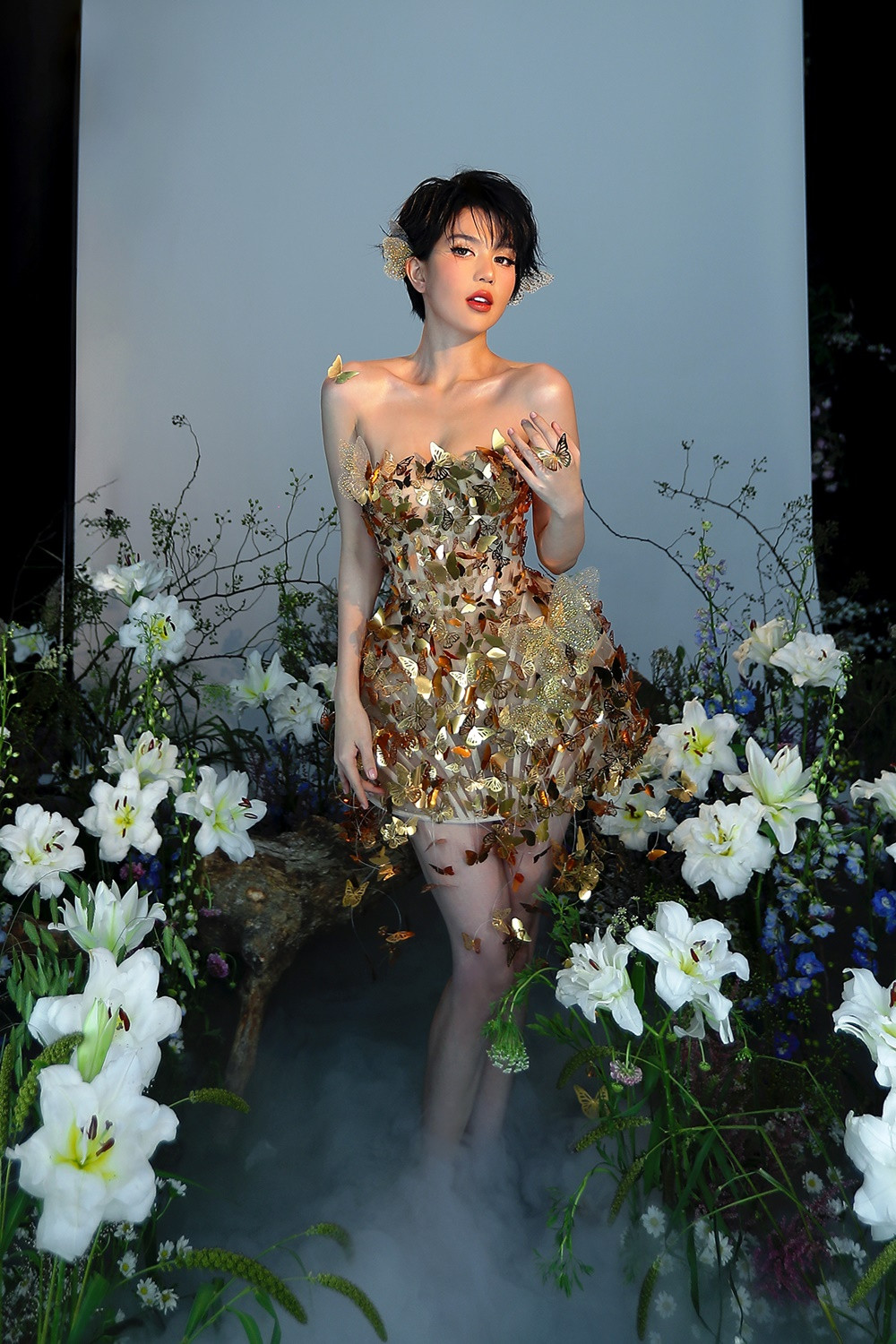 Khi NTK Chung Thanh Phong giới thiệu bộ đầm cánh bướm 3D này, nhiều người đẹp đã rất yêu thích. Bởi bộ váy mang đến vẻ lộng lẫy cho người mặc nhờ kỹ thuật cắt laser hình cánh bướm từ những mảnh sequin lấp lánh.