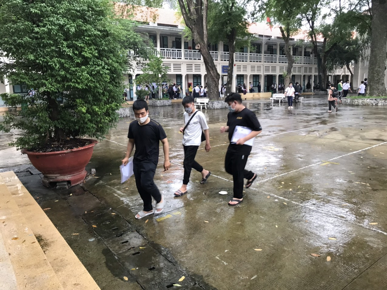 Tương tự, tại Trường THPT Lê Quý Đôn, quận 3, khoảng hơn 500 thí sinh dự thi có mặt từ sớm để vào phòng làm thủ tục. Sau khoảng 30 phút, các thí sinh bắt đầu rời phòng thi. Tuy nhiên, thời điểm này trời có mưa nên nhiều em vẫn nán lại trường.