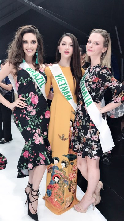 Hương Giang xinh đẹp và nổi bật khi đọ sắc cùng đại diện của các nước.