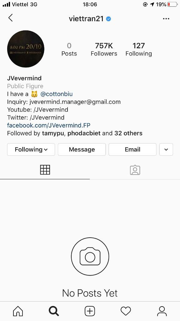 Mới đây nhất, một vài fan tinh ý đã phát hiện: Sau khoảng thời gian dài “đóng băng”, toàn bộ nội dung trên các nền tảng mạng xã hội của JV đã... lặng lẽ biến mất. Gần 50 video triệu views trên kênh YouTube đã bốc hơi 100%. Tài khoản Instagram chính thức cũng trắng tinh và trở về với số post là...0.