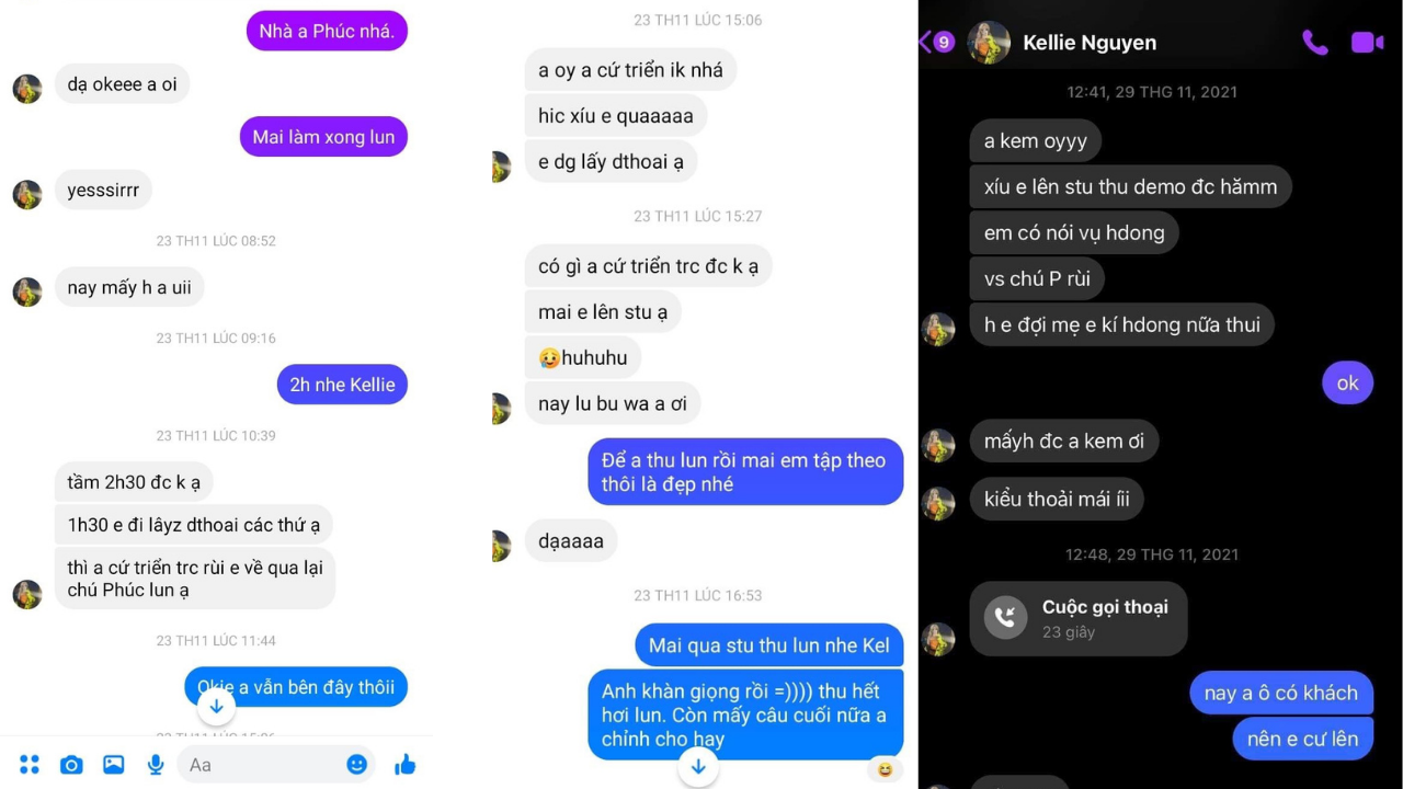 | Có thể thấy trong đoạn tin nhắn, không chỉ là đoạn lyrics mà còn có thu âm của Kellie được gửi cho đàn anh. |