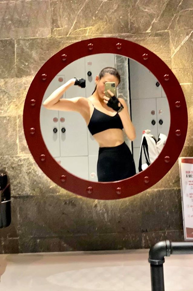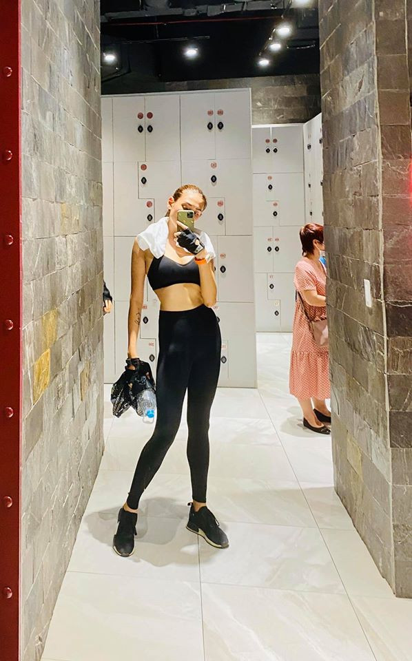 Á hậu, siêu mẫu Võ Hoàng Yến quay trở lại phòng tập để lấy lại vóc dáng thon gọn.