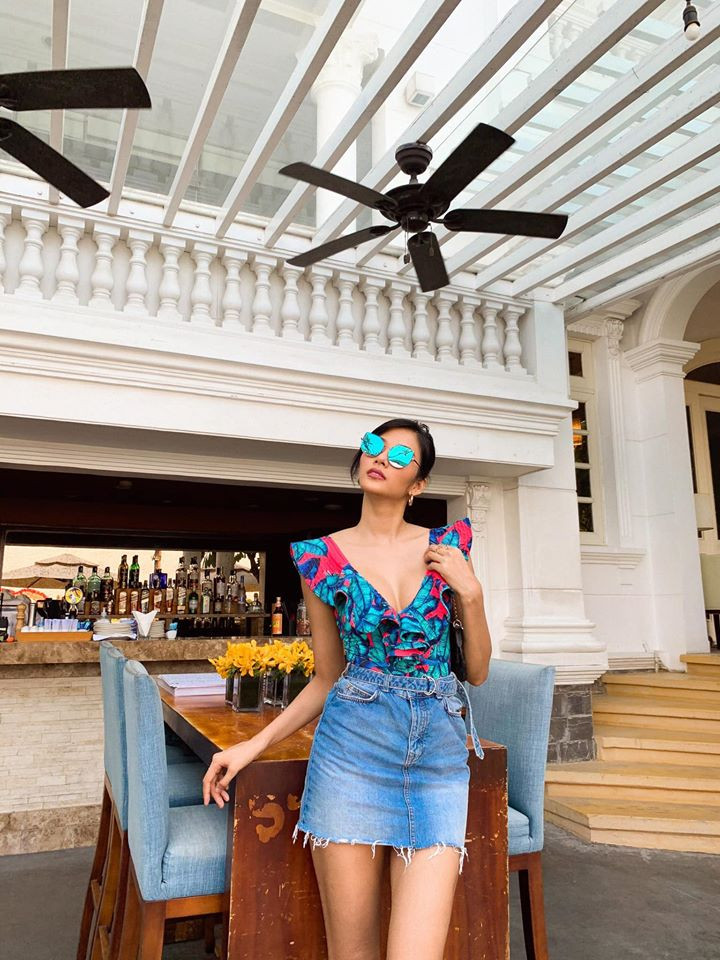 Người đẹp khoe đôi chân dài cực phẩm khi diện short jeans, kết hợp với áo hoa và giày sneaker. Mới đây, khi được cư dân mạng 'tra hỏi' về việc liệu có phải mới sửa mũi hay không, Hoàng Thuỳ đã thẳng thắn trả lời rằng mũi của cô hoàn toàn tự nhiên.