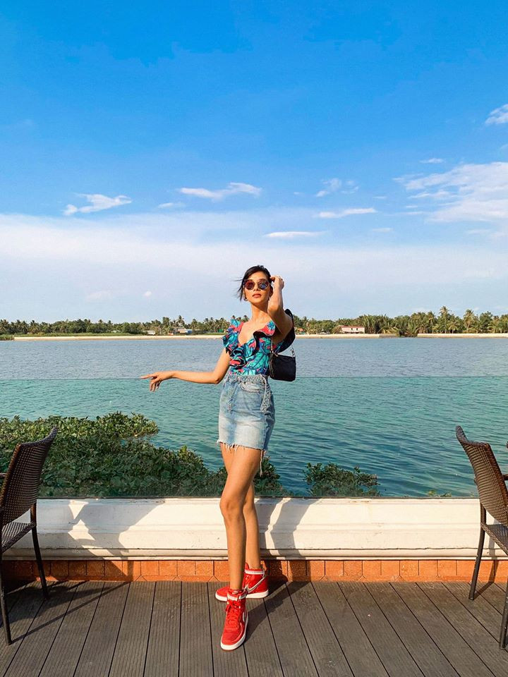 Trên trang cá nhân, Á hậu Hoàng Thuỳ đăng tải loạt ảnh mới, không quên 'cà khịa' hiện tượng mạng Minh Hiếu: "Giờ em ko có tiền em đi đường quyền bằng vé số được ko cô Minh Hiếu" khiến fans thích thú.
