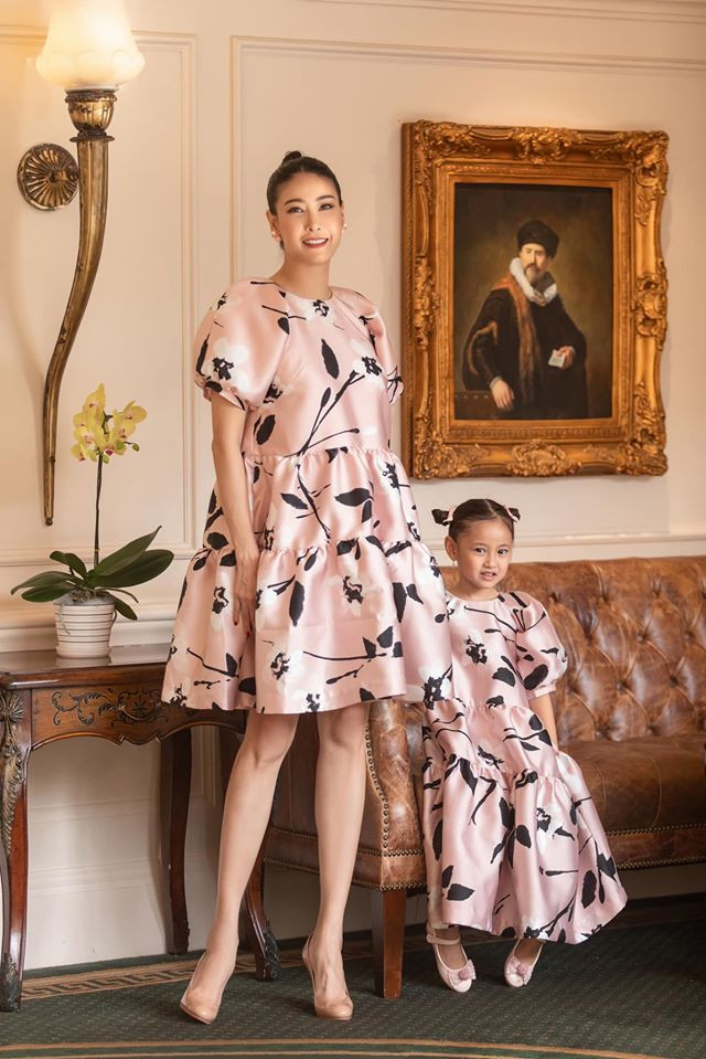Hoa hậu Hà Kiều Anh và con gái diện váy đôi cực kỳ đáng yêu.