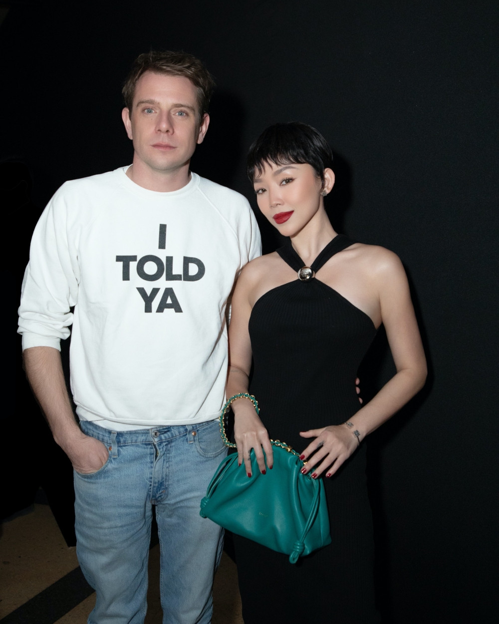 Tóc Tiên chụp hình cùng Giám đốc sáng tạo LOEWE Jonathan Anderson.