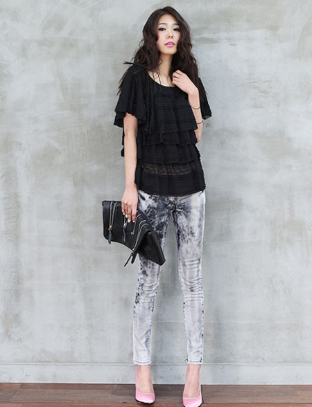 Vì độ sặc sỡ có thừa nên với item này, các nàng chỉ nên chọn cho mình những mẫu áo đơn giản, không quá màu mè để kết hợp hài hòa với jeans họa tiết thôi nhé!