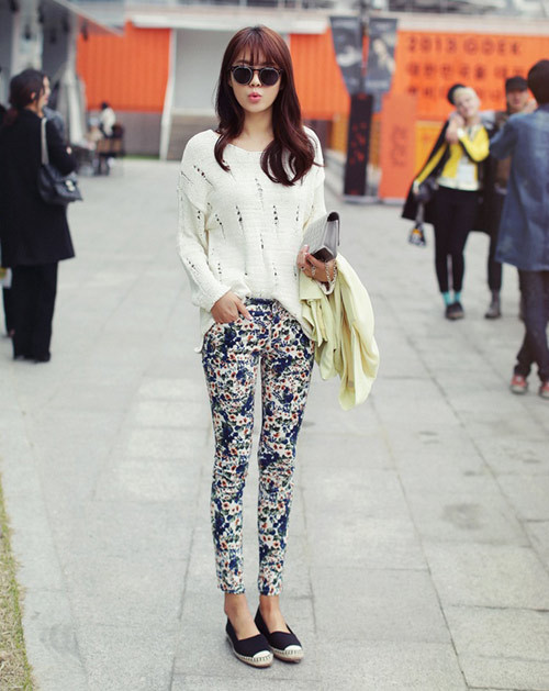 Những chiếc quần jeans hay skinny jeans với hoa hay chấm bi là item dễ bắt gặp nhất trên đường phố. Chúng len lỏi cả vào chốn văn phòng, nổi bần bật giữa những trang phục cổ điển màu đen, nâu, ghi xám.